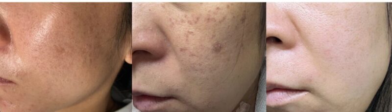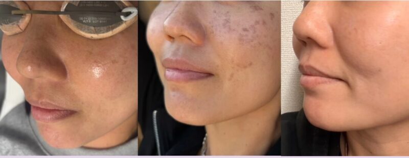 ↑左から施術前、2日後、2週間後の経過です。2週間ほどのかさぶたができる期間(ダウンタイム)がありますが、しみがほぼ取れて、綺麗になっています。